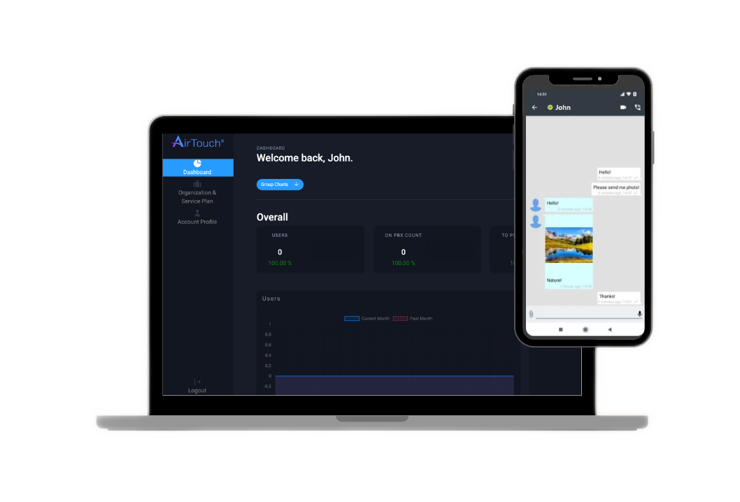 We safeguard the security and compliance of private communications of our customers. We don’t read or listen to any of your chats and calls. Our system does not allow us to read your personal chats contents (including one-on-one chats and group chats) or listen in on your audio or video calls. Your private and group communications are completely secured so that only you and the people you’re talking to can read or hear them. Chat services use X.509 public key encryption and certificates. Again, very difficult to compromise. Airtouch® account authorization system uses secure, one time use tokens. No account information is visible. WebRTC and SIP technologies are combined to provide the different services. WebRTC audio and video uses 2048-bit DTLS HTTPS encrypted tunnels. They cannot be reasonably broken with today’s technology.